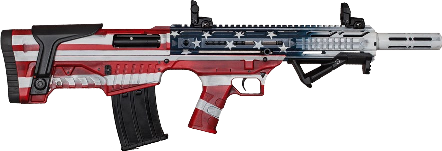 The Patriot Edition of the Tactical Bullpup Shotgun embodies a sense of national pride combined with advanced firearm technology. Adorned with a detailed flag design, this 12-gauge shotgun isn’t just about looks; it’s designed for high performance, adaptability, and reliability.